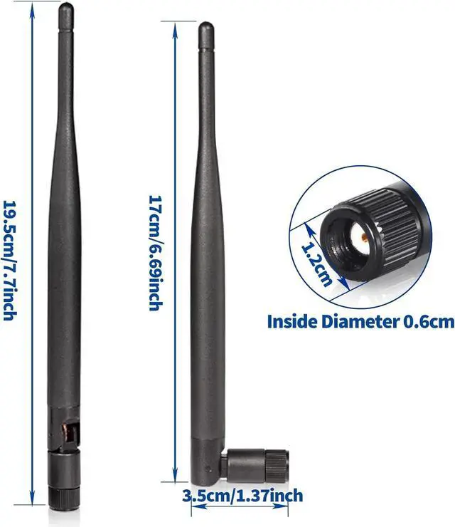Dual Band WiFi 2.4GHz 5GHz 5.8GHz 6dBi MIMO RP-SMA Male Antenna (2-Pack) for WiFi Router Wireless Network Card USB Adapter Security IP Camera Video Surveillance Monitor