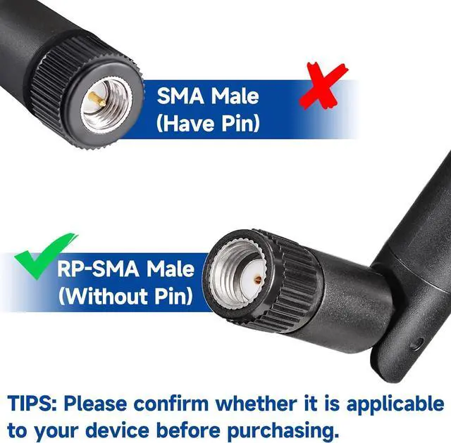 Please Note- The connector is (RP-SMA) (Male) -- [a hole in connector center(without pin)], -- please know the difference between (RP-SMA) and (SMA) before purchase