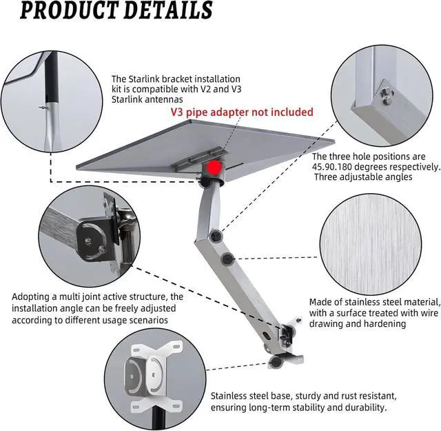 Widely adaptable: Starlink bracket installation kit is compatible with V2 and V3 and Mini Starlink antennas. It is made of high-quality metal materials and can carry greater weight, ensuring a more stable and reliable installation. Considering the preciousness of Starlink equipment, we provide sturdy mounting brackets to ensure the safety of Starlink V2 Gen3 equipment