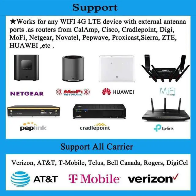 Work for all any routers hotspot with detachable antennas with SMA or TS-9 Jack. support any brand router.