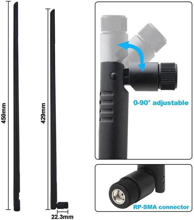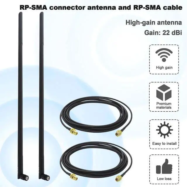 Kaunosta External WiFi Bluetooth Antenna 22DBI Long Range MIMO RP-SMA Male Aerial Antenna and 10FT RP-SMA RG174 Extension Cable for Wireless Router Network Devices PC Camera USB Adapter 2pcs