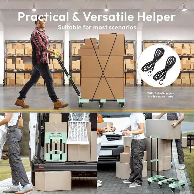 Universal Heavy-Duty Helper From airports to warehouses - 3-stage adjustable handle (32" -47" ) reduces back strain by 40%*. Use for moving, travel, hospital equipment transport, or retail stockall with quiet, office-friendly operation