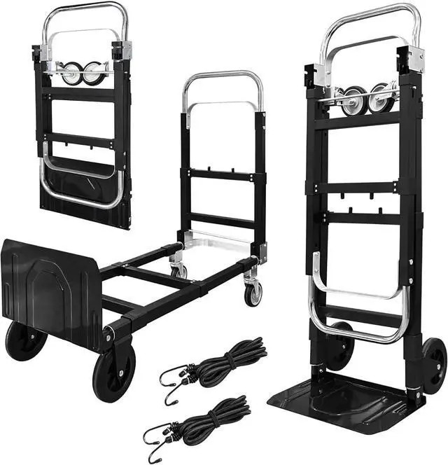 Three-in-one multifunctional design: The folding cart can be switched between a panel trolley, a two-wheeled upright trolley, and a four-wheeled cart without the need for tools, and after use you can easily store it in the trunk of your car, under your bed, or in a storage room.