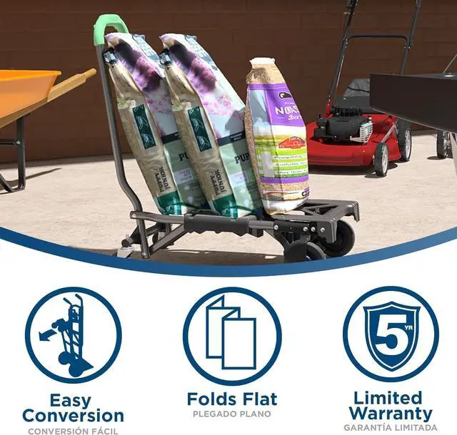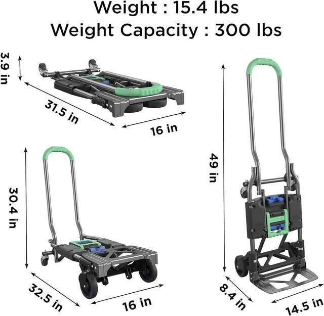 MULTI-POSITION - Use as a Two Wheel Upright Hand Truck, a 4 wheel Cart, and Folds Flat for Transport/Storage