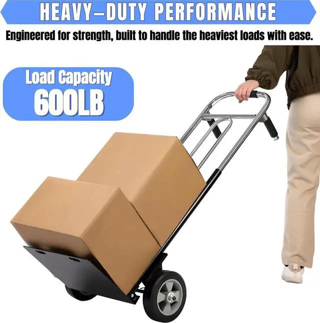 Heavy-Duty Load Capacity- Effortlessly supports up to 600 lbs, making it perfect for transporting heavy boxes, furniture, tools, and more in warehouses, offices, gardens, homes, and shopping tasks.