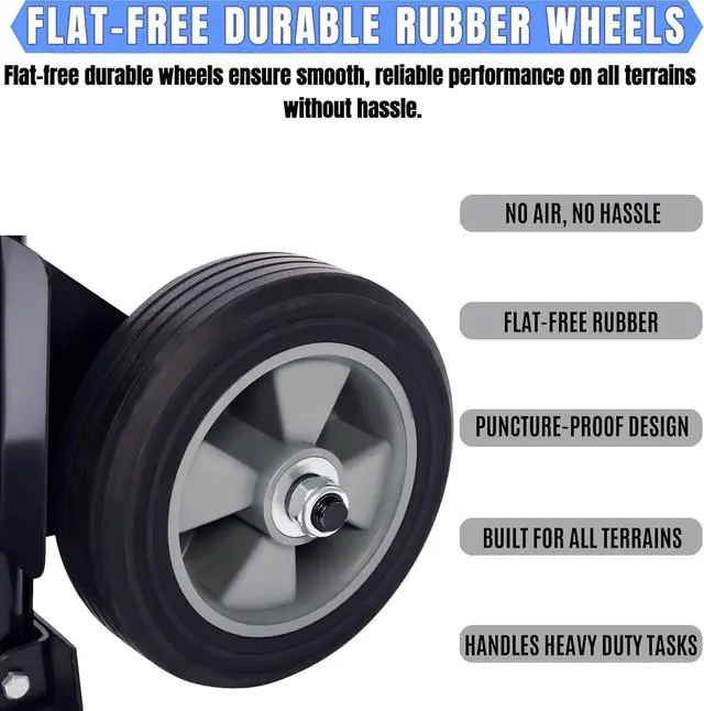 Flat-Free Solid Wheels- Designed with maintenance-free, puncture-proof rubber wheels that eliminate the hassle of inflating or repairing, ensuring smooth and reliable performance on any surface.