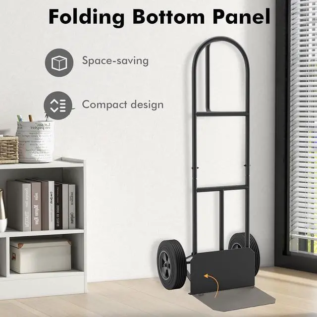Large Load CapacitySupported up to 660 LBS strong capacity, this P-hand dolly cart is made of sturdy and rustproof metal frame. Also, the thickened metal pipes are treated with powder coating process for better rust resistance, allowing you to use it outside without worry.