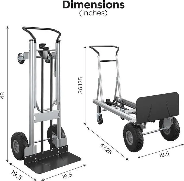 1000 lb. load capacity as 4-wheel cart, 800 lb. load capacity as 2-wheel hand truck