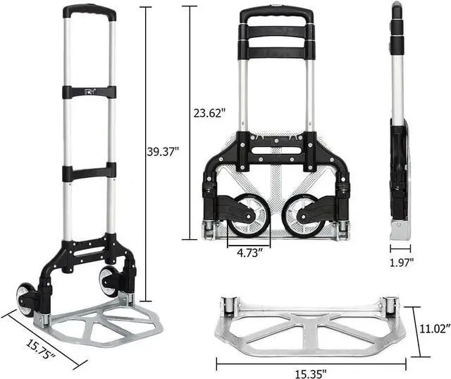 Sturdy Structure: FCH hand truck is well made of durable&rust-proof aluminum alloy and quality wheels, It is sturdy enough to hold up to 165 pounds of cargo and enabling smooth& quiet movement.