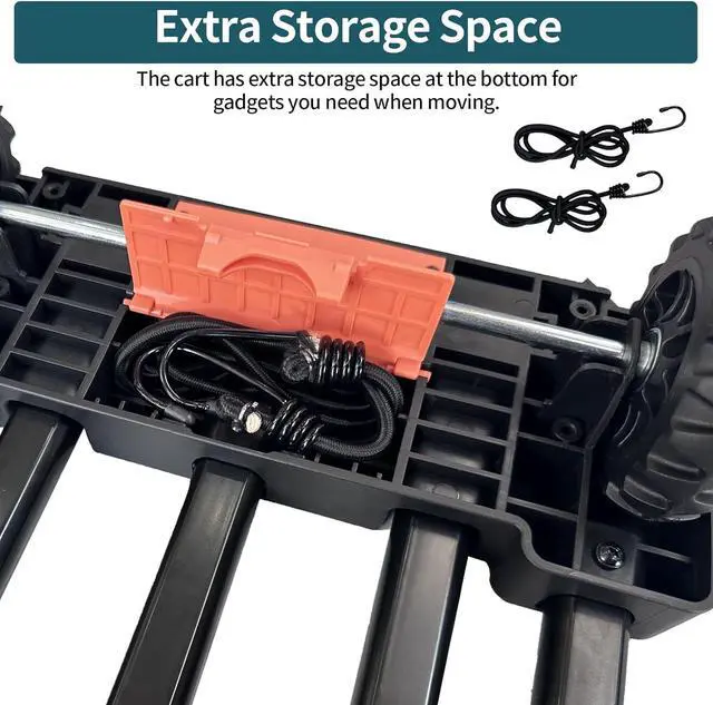 EXTENDABLE BASE PLATE+2 Elastic Ropes This utility cart features an expandable, thickened flat bottom plate extends from 17inch to 20inch to easily accommodate larger items, so say goodbye to worrying about oversized boxes. Non-slip texture ensures that goods will not slip out during transportation The platform size is 16.93 * 12.60 * 4.33 ich, and the expansion size is 19.88 * 12.60 * 38.19 ich