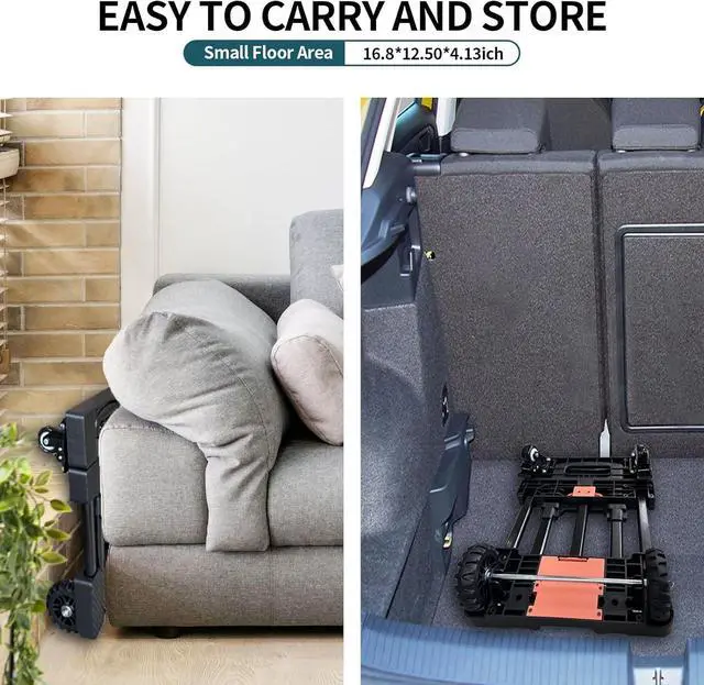 PORTABLE&WIDELY USED This Folding hand truck can be folded or unfolded in few seconds. This hand cart is suitable for shopping, business travel, cargo handling, luggage moving, carrying photographic equipment and musical instruments, outdoor carry, carrying cat litter/dog food, warehouse cargo delivery, transporting water bottles and ice buckets, moving house, home delivery service, you can take it anywhere or store it in your car or other narrow gap