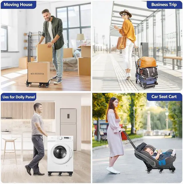Widely UsedThis hand truck is suitable for shopping, business travel, cargo handling, luggage moving, carrying photographic equipment and musical instruments, outdoor carry, carrying cat litter/dog food and so on. You can also use it as a car seat cart for airport or car seat carrier for airport