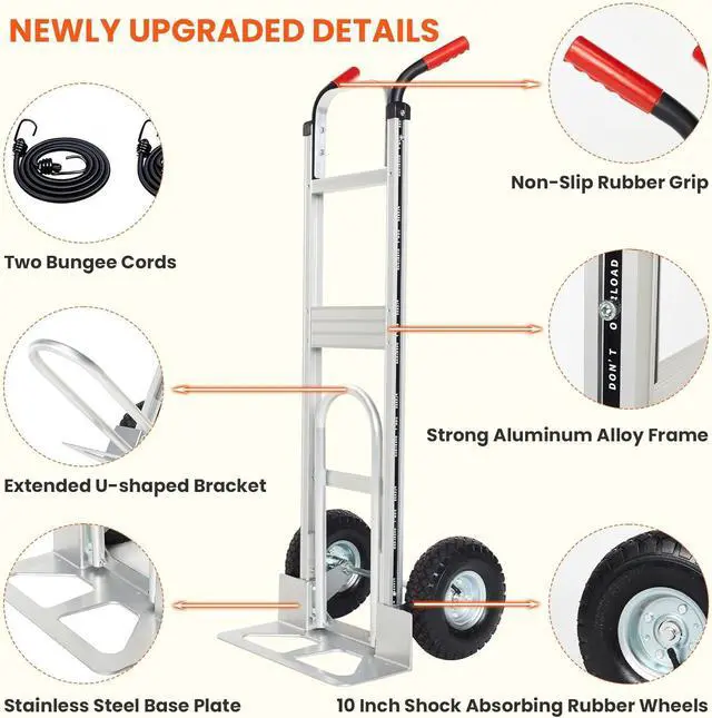 Upgraded Extended Design: Our two wheeled dolly cart has added an extended framework on the basis of traditional carts that offers improved stability and a more efficient, user-friendly experience. The expanded structure provides better weight distribution, making it easier to maneuver heavy loads with confidence. To ensure a hassle-free setup, weve also updated the instruction manual and provided a clear assembly video guide for your convenience