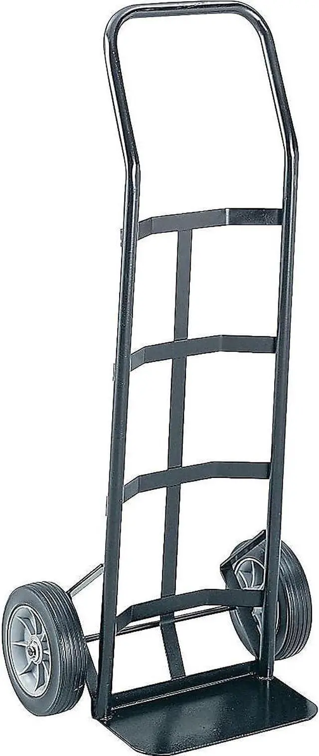 STURDY STEEL FRAME. The hand truck' s heavy-gauge tubular steel frame with welded joints provide extra strength and long-lasting durability. The black powder coat finish helps resist chipping and scratching for a continued professional appearance.