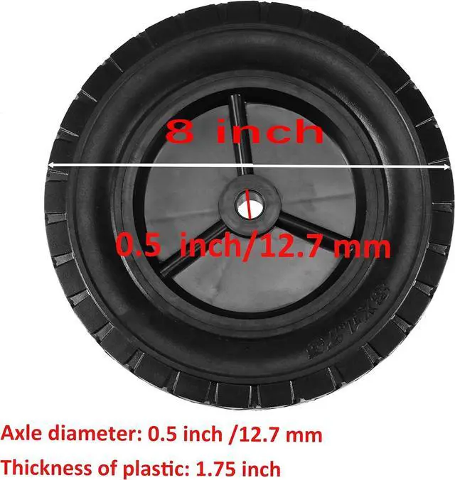 DETAIL SIZE - Comes with 2 pcs 8 x 1.75 -inch lawn mower wheels, wheel diameter is 8 inches, axle hole diameter is 1/2 inches, can bear 110 lbs capacity.