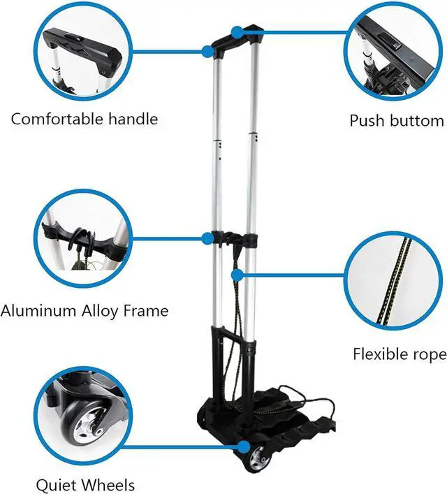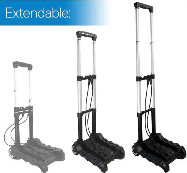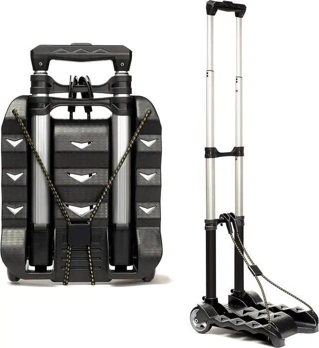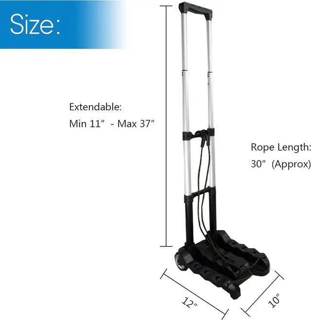 Lightweight and Collapsible: Weighing only 2.8 lbs, the portable luggage cart, built with sturdy construction, opens and closes in seconds providing easy maneuverability. When folded up, it measures only 15" X 10" X 3" and can be easily stored in car trunk or personal backpack.