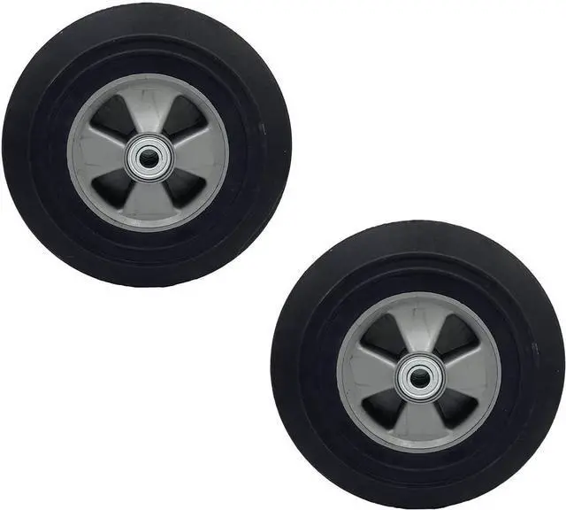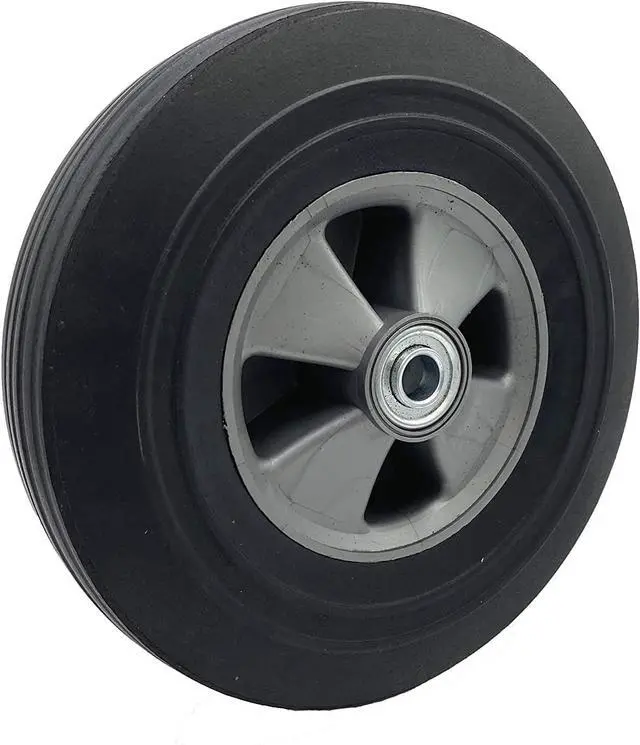 Replacement wheel for hand truck, dolly, cart, power washer and many other wheeled items Solid rubber flat free designs means no more replacing tire tubes Heavy duty solid ball bearing Ribbed tread pattern for increased traction Lifetime Warranty