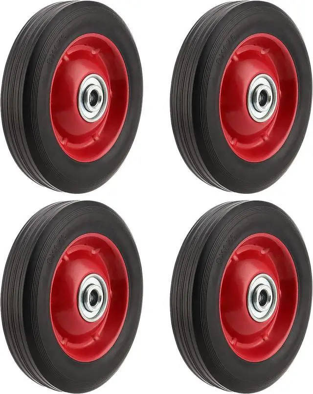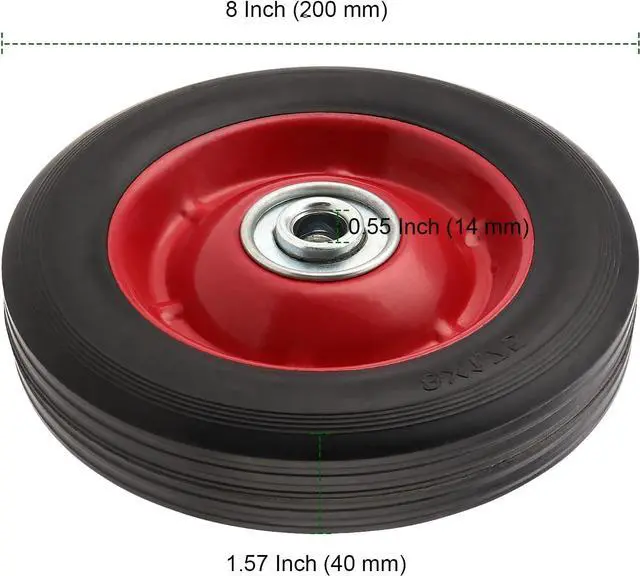 WHAT YOU GET - You will get 4 pieces of solid rubber tires to meet your tire replacement needs. Each tire has a diameter of 8 inches, a width of 1.75 inches, and an axle hole diameter of 1/2 inch. It provides a max load-bearing capacity of 220 lbs.