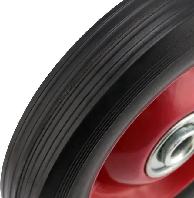 RELIABLE QUALITY - The hand truck replacement wheels are made of solid rubber, and the axles use thick iron painted with red lacquer. The replacement wheels are sturdy, durable, and wear-resistant. It is not easy to get flat or rusty.