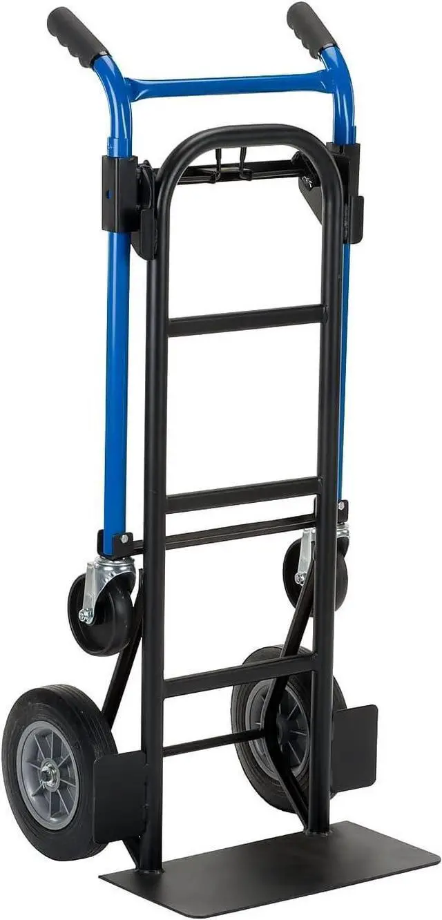 Harper exclusive quick change hand truck converts positions in seconds no tools or pins required.. Extra Large 18" x 9" base plate.