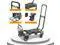 Foldable Cart Easy to store carry: The folding size of this hand cart is 25.6 × 18.1 × 6.3 inches. Weights about 18 pounds. Whether it is placed in the car or in the warehouse, it will not take up much space; Can fold down flat for easy transport and storage in car trunk, under a bed, in a closet, storage rooms or garages. very suitable for users with limited storage space, saving space overall.