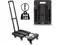 Folding Hand TruckCan hold up to 500 lbs. The hand truck base measures 16.7 " x 12.4 " and the length is extendable. Broaden base plate with non-slip pad on it enables to hold large-sized stuffs more stably when transporting. When folded up, can be stored in car trunk or closet.