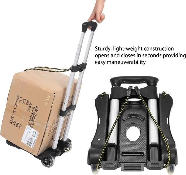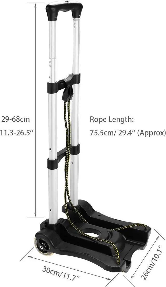 Are Perfect: the drawbar shrinks smoothly and is not easy to get stuck. The wheels and bearings move smoothly, and the flat ground is unobstructed. Rubber tires will not generate a lot of noise during transportation. The elastic hook rope assists in fixing the transported items.