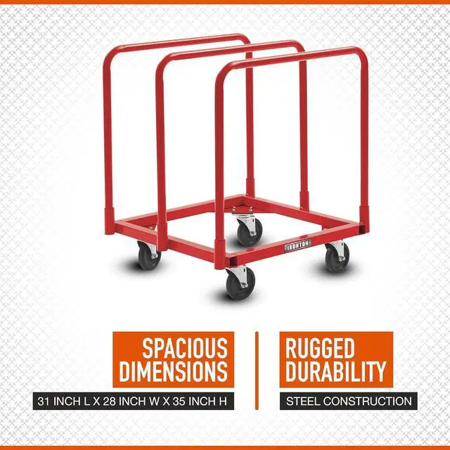 1400-lb. capacity Rugged steel construction stands up to heavy loads Four 5in. poly casters roll smoothly 3 handles allow easy maneuvering 31in. L x 28in. W x 35in. H