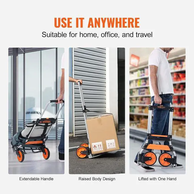 Tough as a Tank: We know durability matters, which is why our hand truck dolly is made with lightweight yet sturdy aluminum alloy. It' s corrosion-resistant, ensuring it stands the test of time. The handle is adjustable to fit different users and tasks. Say hello to a reliable companion that won' t let you down!