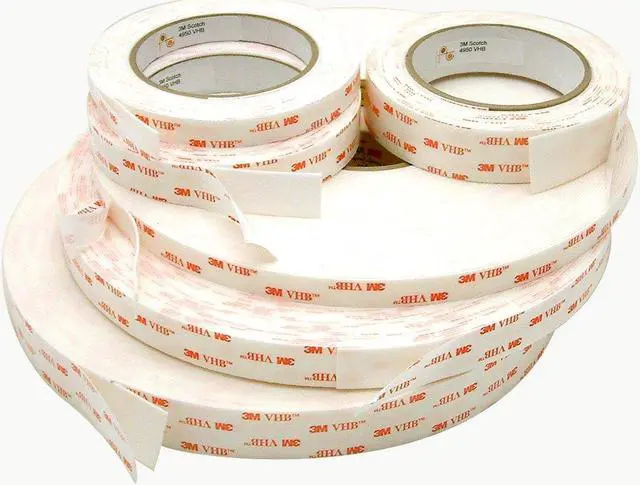In many situations, they can replace rivets, spot welds, liquid adhesives, and other permanent fasteners. These VHB tapes are made with an acrylic foam which is viscoelastic in nature. This gives the foam energy absorbing and stress relaxing properties which provides these tapes with their unique characteristics. The acrylic chemistry provides outstanding durability performance and the tapes have excellent durability and excellent solvent and moisture resistance.