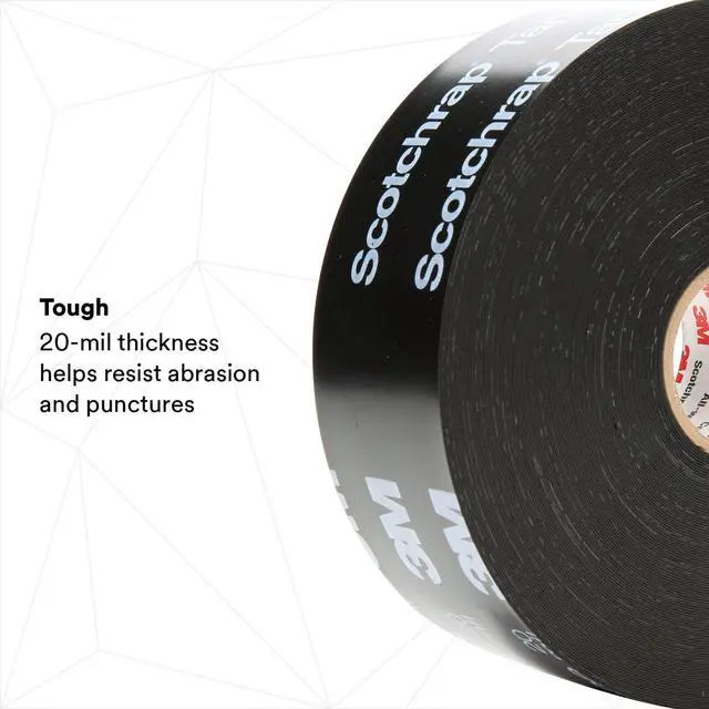 Insulating Electrical Tape, Corrosion-Protection, Vinyl, Tape Adhesive Material Rubber, 6 in, 100 ft, 20 mil, 3M (TM), Scotchrap (TM), Series 51, Black, Minimum Tape Performance Temperature -55 Degrees F, Maximum Tape Performance Temperature 176 Degrees F, Voltage Rating Not Rated, Continuous Roll, Single-Sided, Package Quantity 4