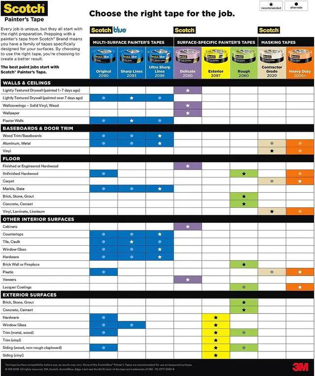 - Tape Application Tips: For great paint results make sure the surface is clean, dry and dust-free so that the tape sticks properly. Next, apply the tape onto the surface while pressing down firmly as you go. And lastly, let the tape set for about 30 to 60 minutes before painting.