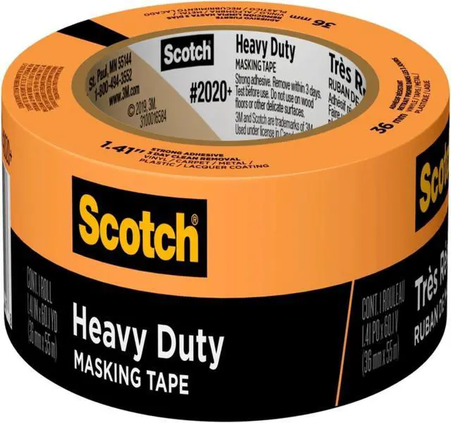 Designed for interior or exterior job site paint masking applications on non damageable surfaces. Use on vinyl, carpet, metal, and plastic. Scotch Heavy Duty Masking Tape is recommended for use with or on lacquer coatings. This tape holds to surfaces for up to three days and then removes easily without leaving any sticky residue behind.