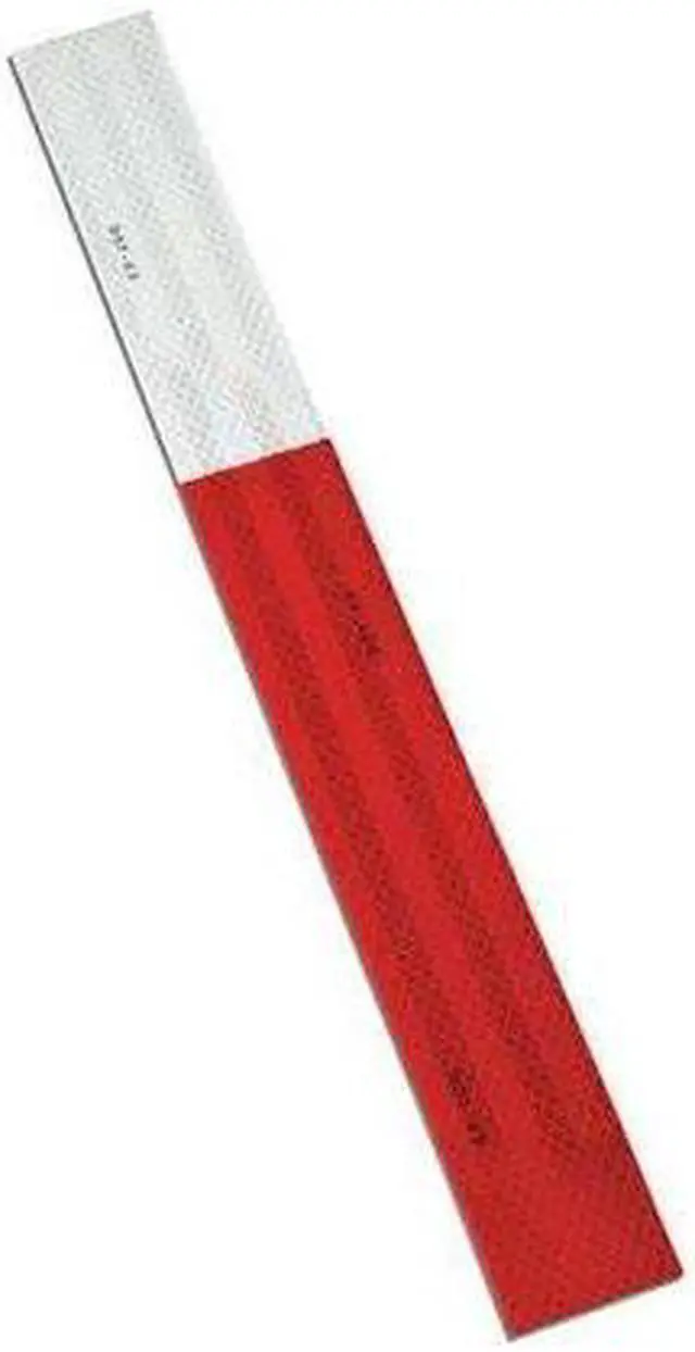 Reflective Tape, Reflective Color Red, White, Width 2 in, Length 18 in, Adhesive Material Acrylic, Backing Material Retroreflective Microprismatic Material, Thickness 14 mil, Adhesion Strength 48 oz/in, Outdoor, Package Quantity 10. This item has been restricted from sale in the following state (s): []