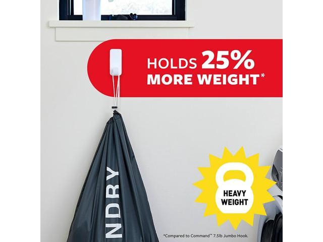 - DAMAGE-FREE ORGANIZATION- Say goodbye to holes, marks, or sticky residue on your walls, doors, cabinets, or closets; Command Hooks by 3M are strong, easy to use and help keep your walls looking beautiful. Holds 25% more weight (vs. Command 7.5lb Jumbo Hook).