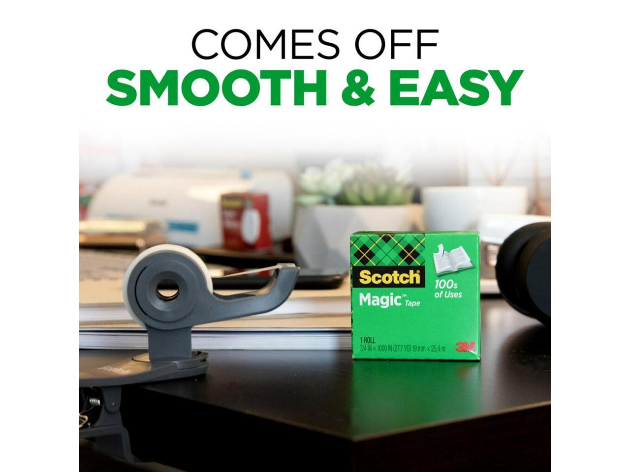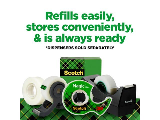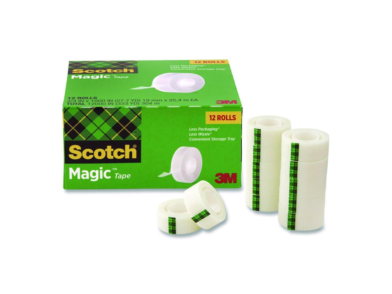 - The original matte-finish, invisible tape. Scotch Magic Tape Refills are compatible with all of the Scotch Brand desktop dispensers for easy use. 3/4 in. x 1400 in., 12 Rolls, 1 in. core.