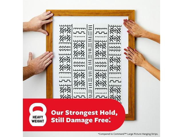 - DAMAGE-FREE DECORATING- Say goodbye to holes, marks, or sticky residue on your walls; Command Heavyweight Picture Hanging Strips by 3M are easy to use and help keep your walls looking beautiful. Our STRONGEST HOLD with 40% more adhesive holding power compared to Command Large Picture Hanging Strips.