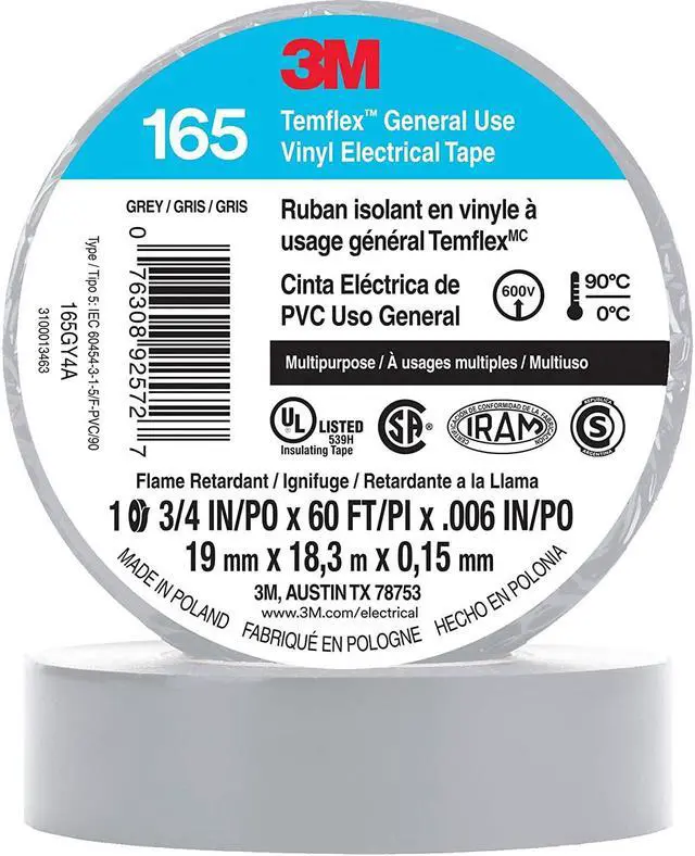 ![Main image of 3M Temflex Solvent-Free Vinyl Electrical Tape [6 mil] (165): 3/4 in. x 60 ft. (Grey) *10-pack](https://c1.neweggimages.com/productimage/nb640/ACWFD24053118NEC978.jpg)