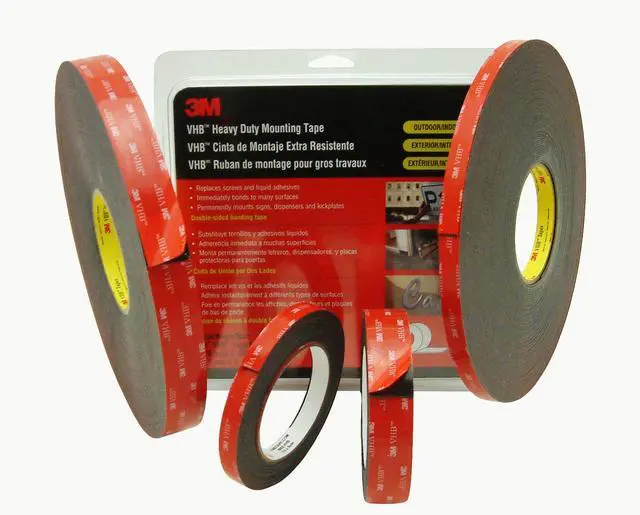 3M 5952 Heavy Duty Mounting VHB Tape is black, double-coated VHB adhesive tape with an acrylic foam core. A modified acrylic adhesive is on both sides of very conformable foam which provides adhesion to the broadest range of substrates/surfaces, including most powder coated paints. Comes on a red film release liner.