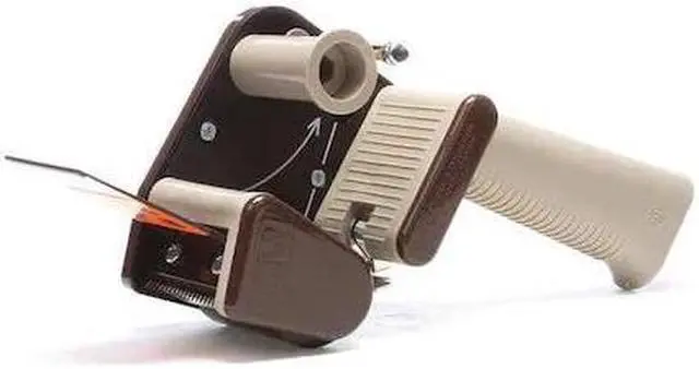 Tape Dispenser, For Maximum Tape Width 2 in, Dispenser Strength Rating Heavy, For Tape Core Diameter 3 in, Plastic, Pistol Handle Grips, Height 5 3/4 in, Width 2 3/4 in, Length 2 3/4 in, Blade Material Carbon Steel, Tan, For Maximum Tape Roll Diameter 5 1/6 in, Includes Noise Reducing Pressure Bar. This item has been restricted from sale in the following state (s): []