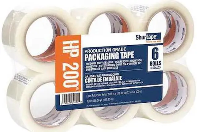 Clear, Tape Adhesive Rubber, Tape Application Hand, Tape Strength Rating Light Duty, Tape Tensile Strength 27 lb/in, Tape Thickness 1.8 mil, Imperial Tape Length 110 yd, Imperial Tape Width 2 in, Metric Tape Length 100 m, Metric Tape Width 48 mm, Min. Tape Performance Temp. -20 Degrees F, Max. Tape Performance Temp. 150 Degrees F, Packaging Tape, Package Configuration Case, Series HP 200, Shelf Life 12 mo, ASTM D 1974, Tape Adhesive Strength 44 oz/in, Tape Backing Material Polypropylene