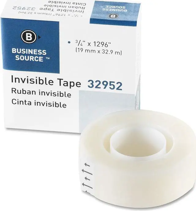 Business Source Invisible Tape Refill Roll 1" Core 3/4"x1296" 12RL/BX CL 32952BX