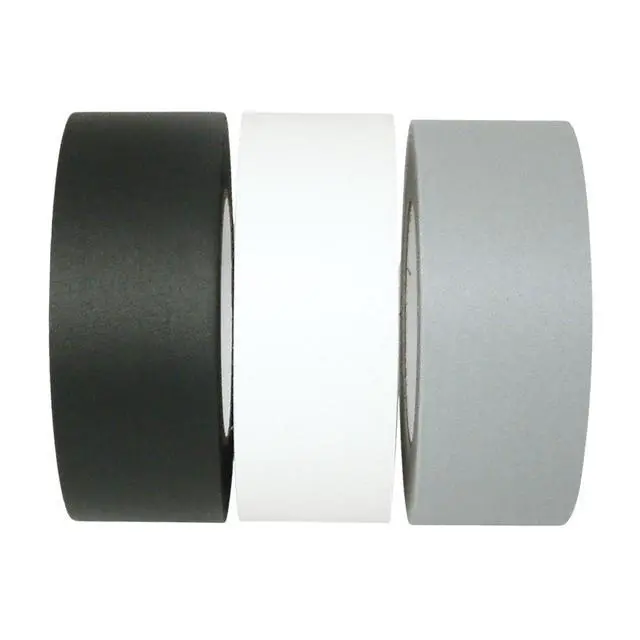 JVCC GAFF30YD Premium Grade 30 Yard Gaffers Tape is a premium-grade vinyl-coated cloth gaffer's tape used in A/V, TV, photography and motion picture industries to hold wires, light and props. This tape is designed to not leave adhesive residue behind when removed. The black, grey and white rolls come from Scapa 225 source material and the red rolls come from Polyken 510 source material. Made in Canada.