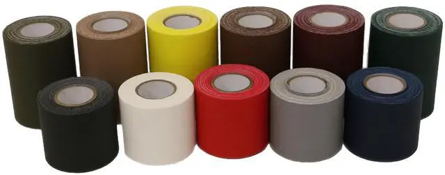 JVCC REPAIR-1 Leather & Vinyl Patch Repair Tape is a strong vinyl-coated cloth tape coated with an aggressive adhesive used for leather and vinyl sofa and seat repair. Offered in both 2" nominal (1.88" actual) and for larger tears needing wider tape a 3" nominal (2.83" actual) rolls. Roll lengths are 15 feet (5 yards) so if you don't want to buy a full-length gaffers tape roll, which might take you years to use up, this is a great alternative. On the other hand, if you are using the tape to make a patch, this should provide plenty of material so it can be replaced as needed. Can be used for tears, rips, patch or cover concealment, color coding, arts & craft projects and a multitude of other uses and applications. This is the tape we most often sell for school bus seat repair. For the cleanest finish we suggest using a razor blade to cut the tape even though the tape is hand-tearable. Now comes in 10 colors: black, brown, burgundy, dark blue, dark green, gray, olive drab, red, tan and white. JVCC REPAIR-1 has a more matte finish since it is made from vinyl-coated cloth gaffers tape; if you want a tape with a shinier appearance please see JVCC's REPAIR-2HD product which is made from polyethylene-coated cloth duct tape. This tape is primarily used indoors but can be used outdoors over short time periods (the tape does not offer any type of UV-protection).