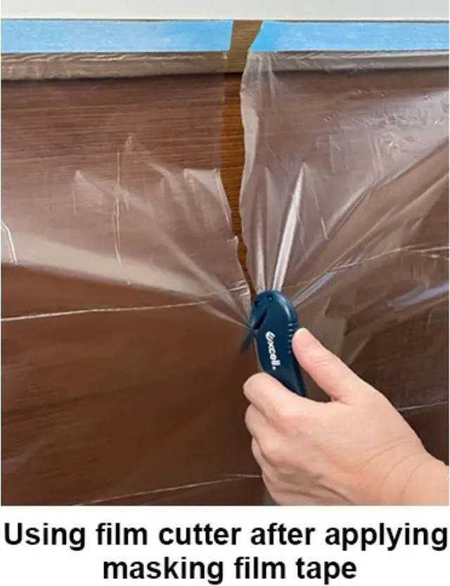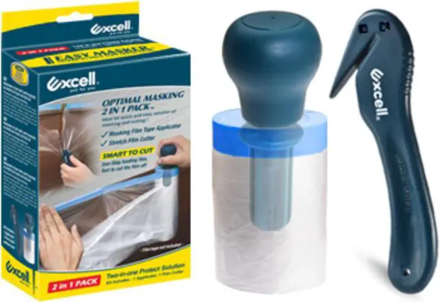 The Excell MS-1709 Easy Masker is a quick and easy solution for masking and cutting. This two-in-one kit includes one film tape applicator and one film cutter. The ergonomic design allows you to easily dispense tape and plastic film to cover floors, fixtures, windows, doors and more. This will protect your surfaces during surface coating, spray paint, or painting. Once you've applied the film, use the cutter to quickly cut the film to the desired length.