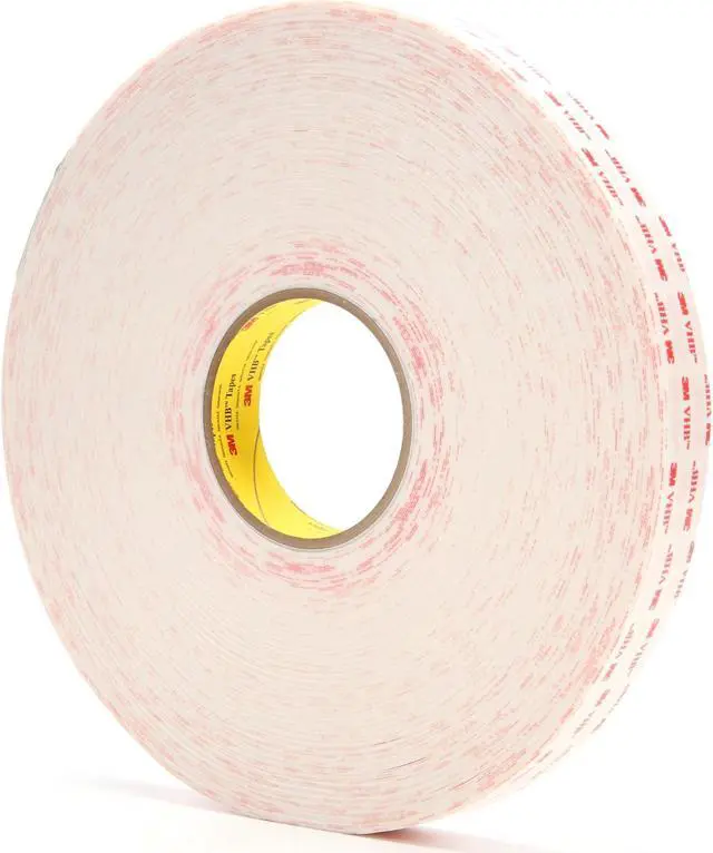 3M VHB Tape consists of a durable acrylic adhesive with viscoelastic properties. This provides an extraordinarily strong double sided foam tape that adheres to a broad range of substrates, including aluminum, stainless steel, galvanized steel, composites, plastics, acrylic, polycarbonate, ABS and painted or sealed wood and concrete. These bonding tapes provide excellent shear strength, conformability, surface adhesion and temperature resistance. They are commonly used in applications across a variety of markets including transportation, appliance, electronics, construction, sign and display and general industrial. Reliably bonds a variety of materials with strength and speed for permanent applications.