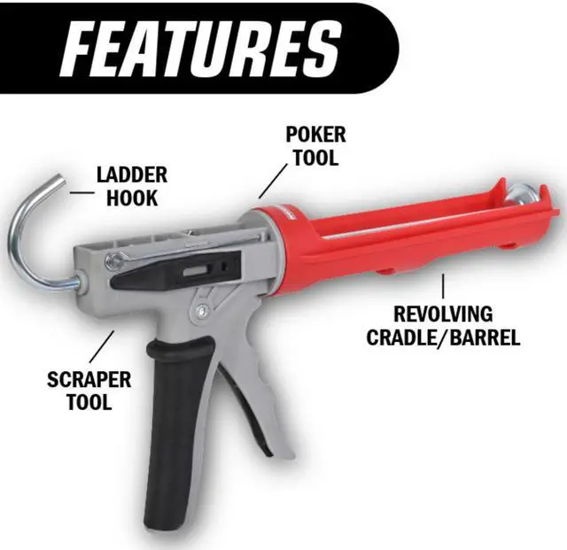 Featuring an integrated 2-sided scraper, this caulk gun simplifies surface preparation by allowing you to efficiently remove old caulk. Ideal for renovation and repair projects, the scraper ensures that surfaces are clean and ready for new material, saving you time and effort on each job.