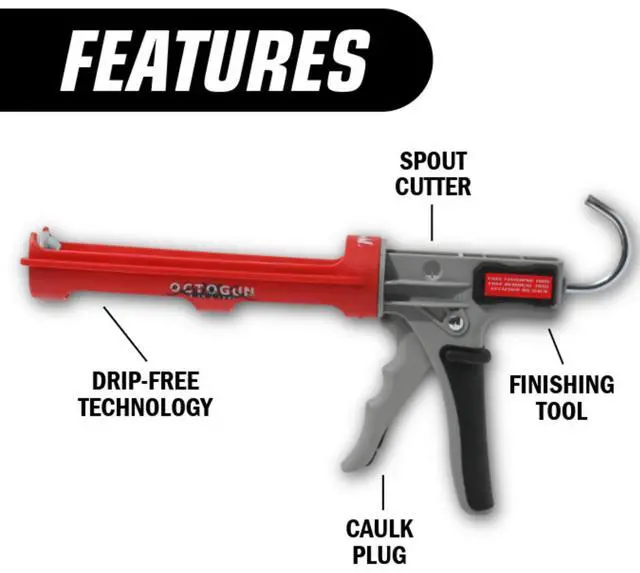 The Newborn Octogun 208D includes a built-in 4-sided tooling square that helps you achieve professional-grade smoothness on your caulk bead. This integrated tool ensures that every application looks professional, making it easy to get clean, even results every time, whether youre sealing windows, doors, or bathroom tiles.