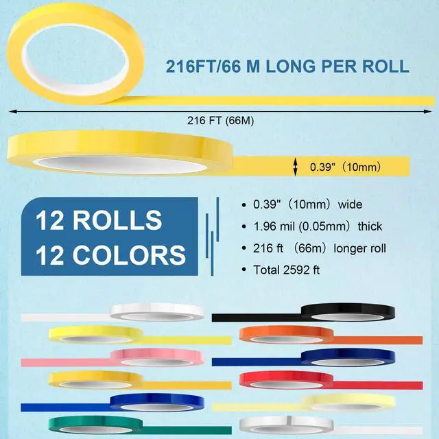 Enough Quantity: you will get 1 pack of 12 rolls of multicolored high temperature dental tape, each roll is 216ft long and 0.4in wide; Each pack includes yellow, orange, sky blue, black, green, pink, and more.