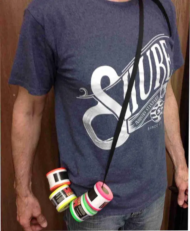 This strap has an extra wide circumstance, perfect for carrying multiple rolls of tape for carrying on shoulders or around neck. 64" strap is made from durable 1/2" nylon webbing and is fully adjustable. Tough dual latch buckle unlatches easily for changing rolls.